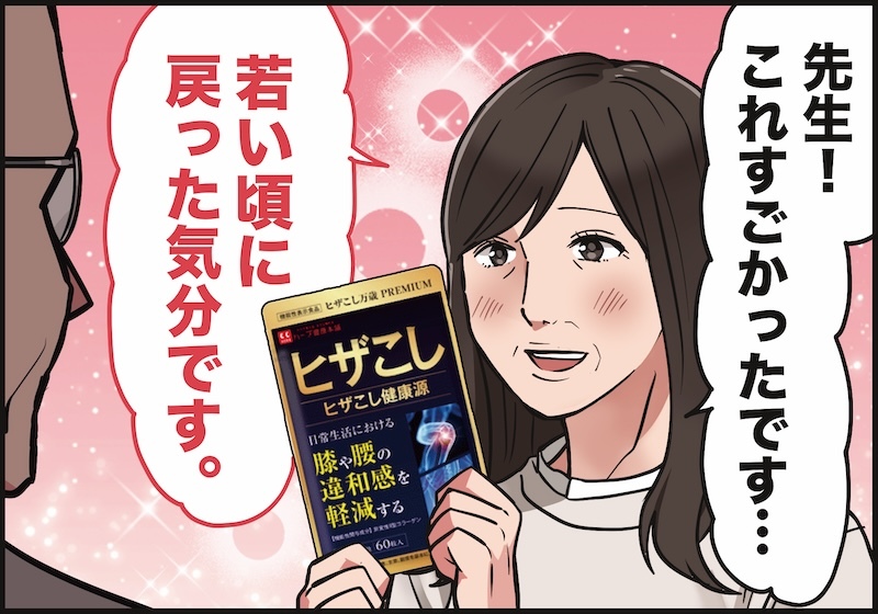 最近膝が気になり出して、、一時的かなと思ってたのですが、気づいたら何年も・・「こんな老後は嫌だ、、」と途方に暮れていた時に見つけたのがヒザこし健康源でした。