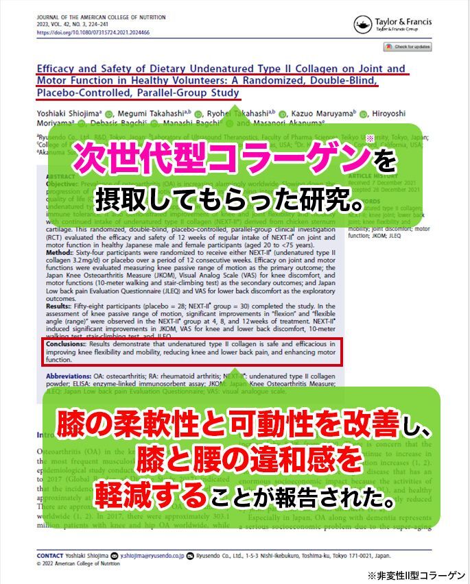 関節軟骨"そのもの"である非変性II型コラーゲンは違います。